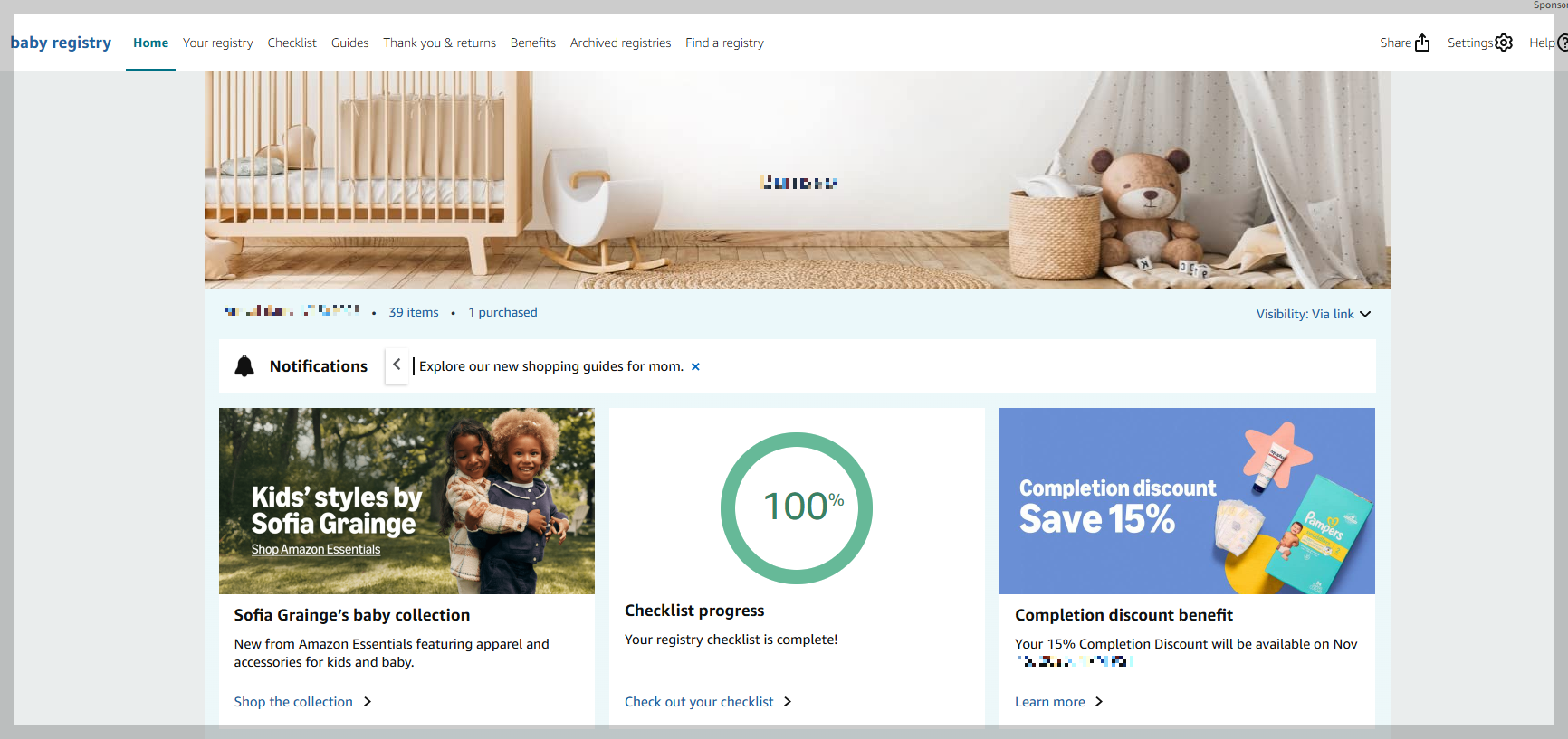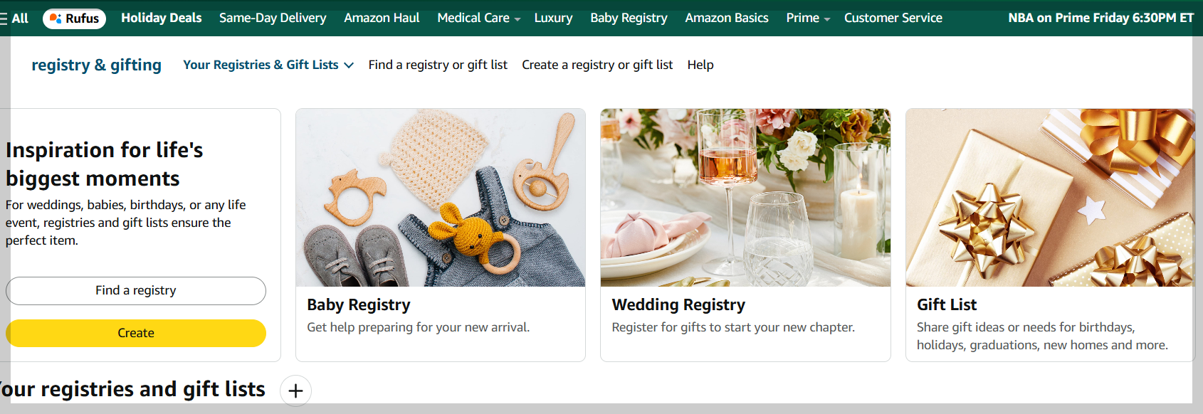 이중에서도 위 화면에서 보이는 "Baby Registry"를 클릭해서 만들면 된다.