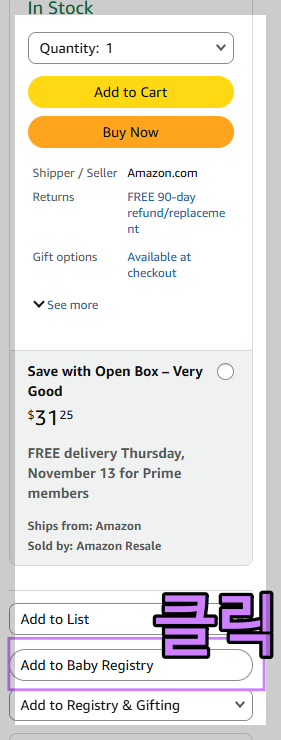Add to Baby Registry라고 있는데 이걸 클릭하면 된다.