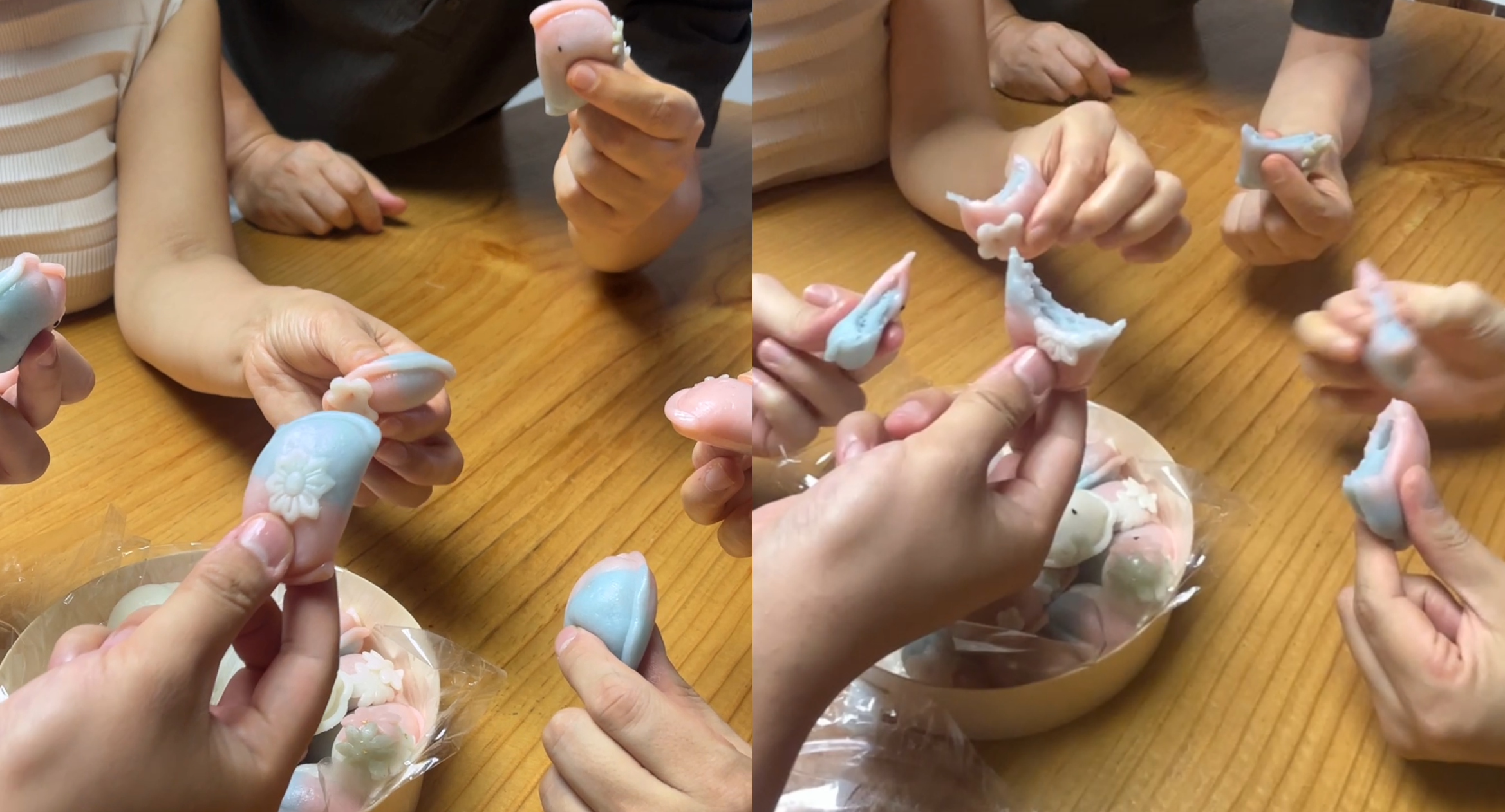 가족들 하나씩 떡을 들고