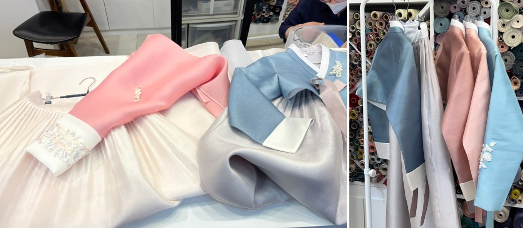 가면 여러 스타일의 한복이 쫙 디피되어 있다