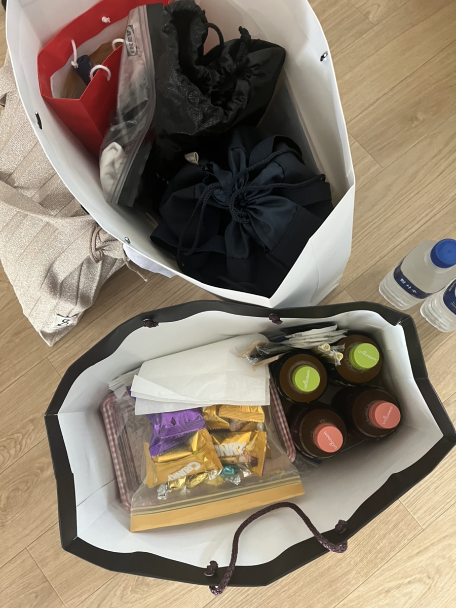 하루종일 밖에 있어야 해서이렇게 쇼핑백에 필요한걸 다 모아놨다